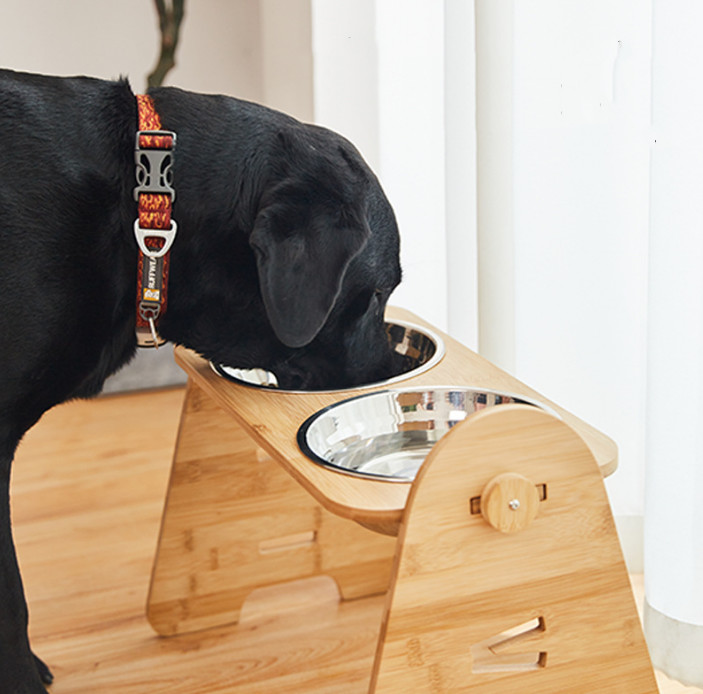 बड़े कुत्तों के लिए टिकाऊ बांस समायोज्य उठाया कुत्ते के कटोरे