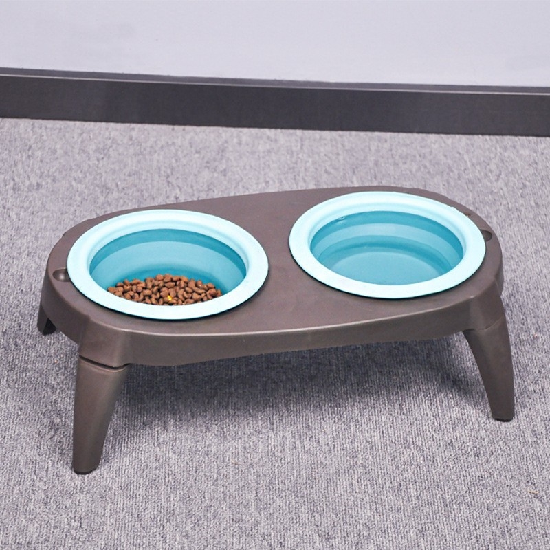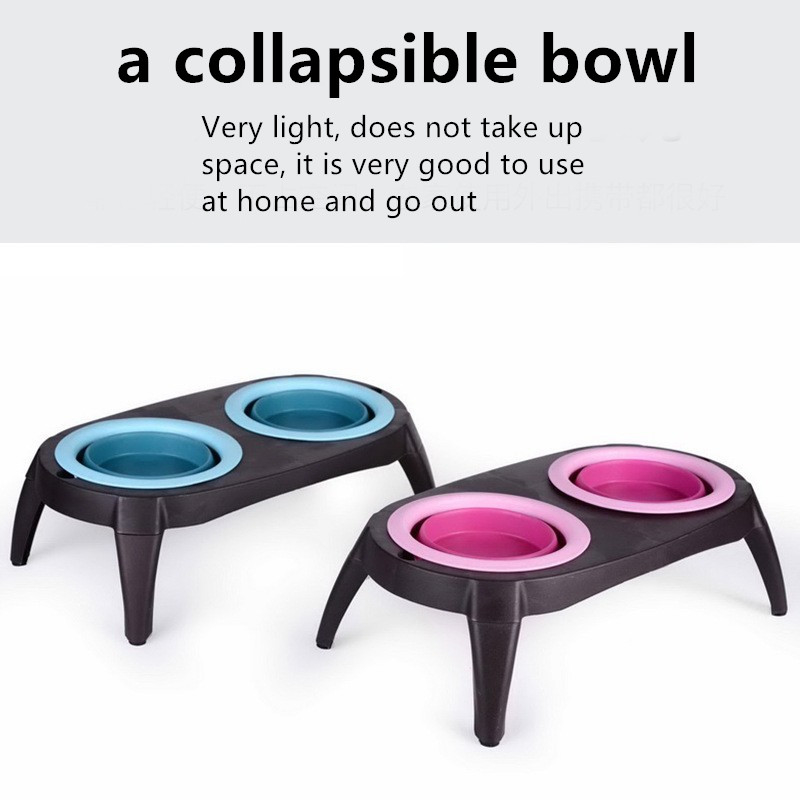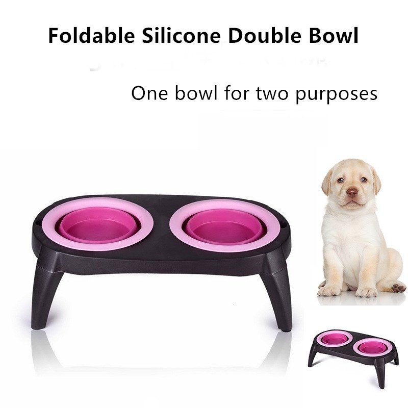 एंटी-ओवरटर्निंग पेट डबल बाउल सिलिकॉन फोल्डिंग डॉग बाउल पेट ड्रिंकिंग वाटर फीडिंग कैट बाउल