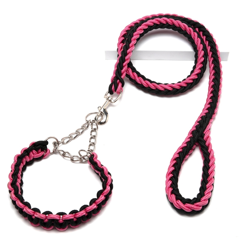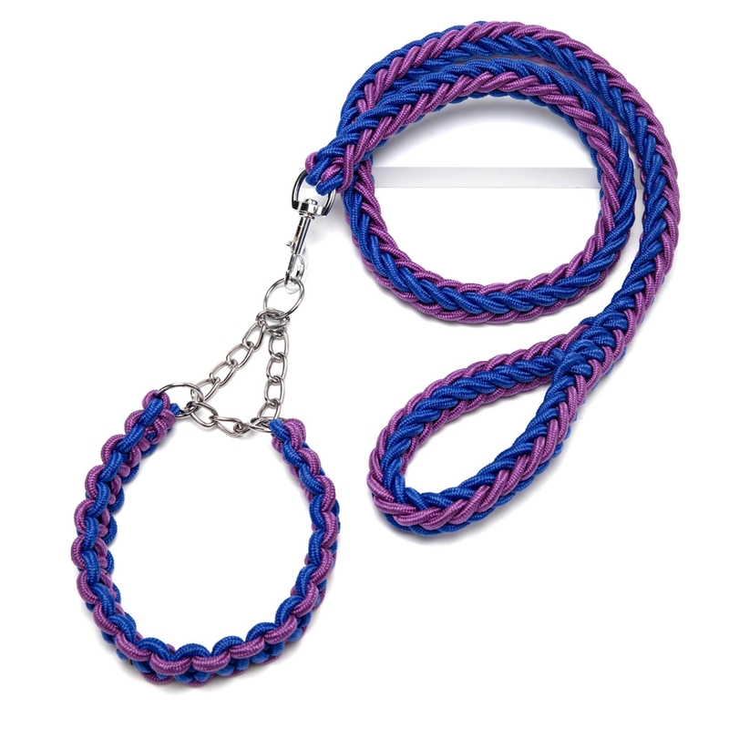 बिल्ली का बच्चा कॉलर और पट्टा कुत्ता श्रृंखला विरोधी प्रभाव विस्फोटक पी-चेन पालतू ट्रैक्शन बेल्ट 8-स्ट्रैंड नायलॉन ट्रैक्शन रस्सी