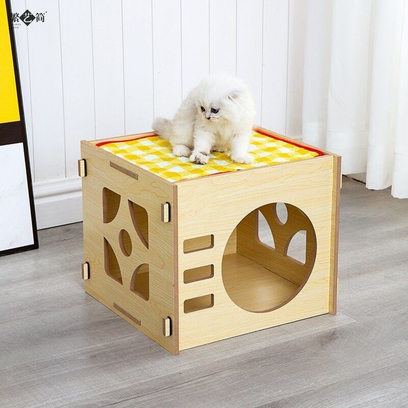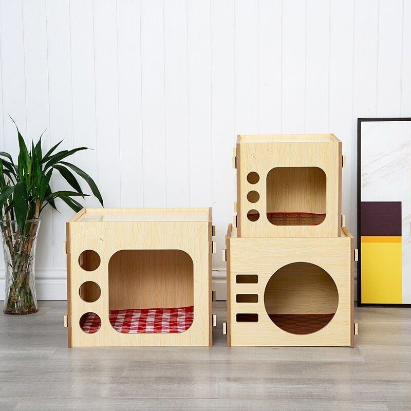 वुडन टिम्बर डॉग बेड कैट पैसेज स्मॉल डॉग टेडी कैट सॉलिड वुड कॉम्बिनेशन पूरे साल यूनिवर्सल है